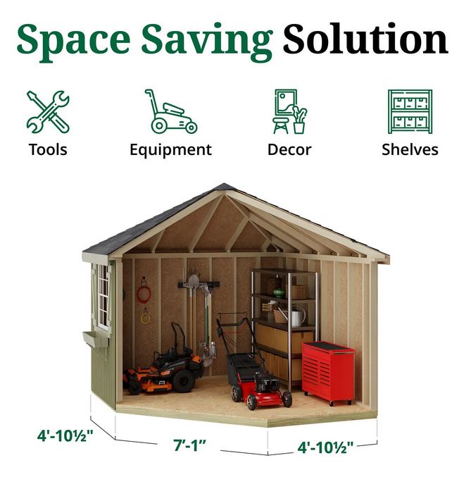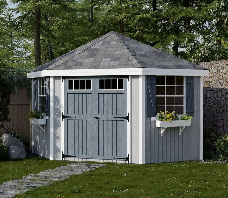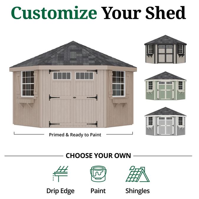 - Customize your Colonial Five Corner Shed with your choice of paint and shingles (purchase separately)