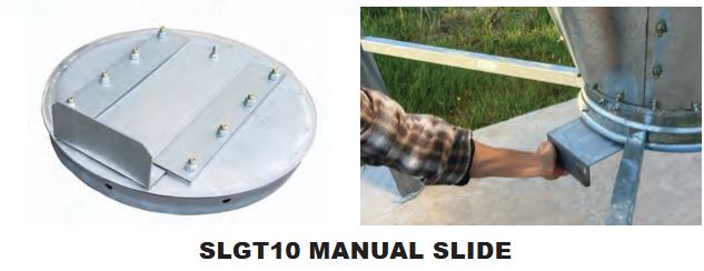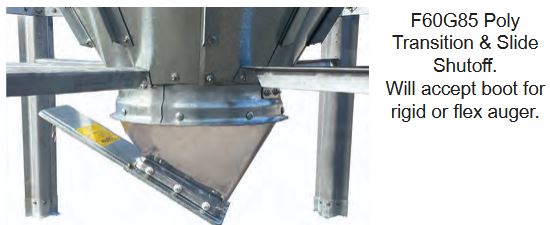 Discharge Method: Please choose from slide gate or plastic transition before adding to your cart.  Choose "plastic transition & slide shut off" if you plan on using an auger. Slide gate will direct the materials down into a bucket or tote. Plastic Transition includes an angled transfer plate and slide assembly to accept either a rigid or flexible auger.