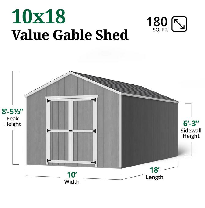 - -Customize your Value Gable Shed with your choice of paint, shingles, and drip edge (purchase separately)