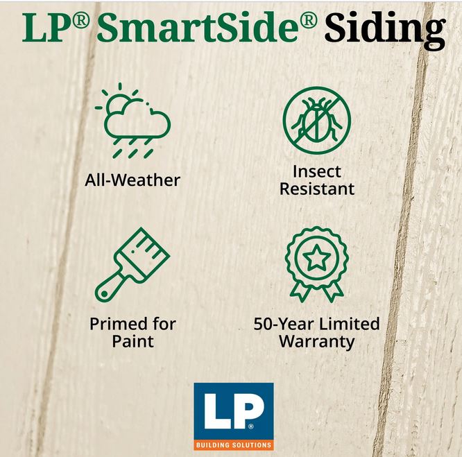 - -LP SmartSide siding backed by a 50-year limited warranty